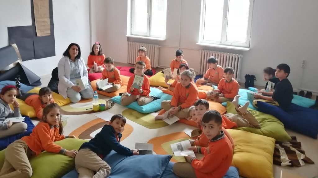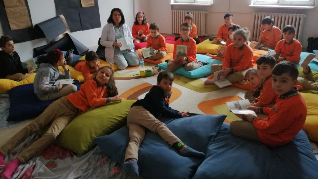 Okulumuz 3/C sınıfı Öğrencileri öğretmenleri Özge Gülsün ASLAN tarafından sınıf dışında hazırlanan farklı bir ortamda ders etkinlikleri gerçekleştiriyorlar.Öğrencilerimiz evden getirdikleri minderler üzerinde ayakkabılarını da çıkararak kitap okuma ,masal,hikaye anlatma,okunan masal ve hikayeyi oyunlaştırma... vb etkinlikler yapıyorlar.